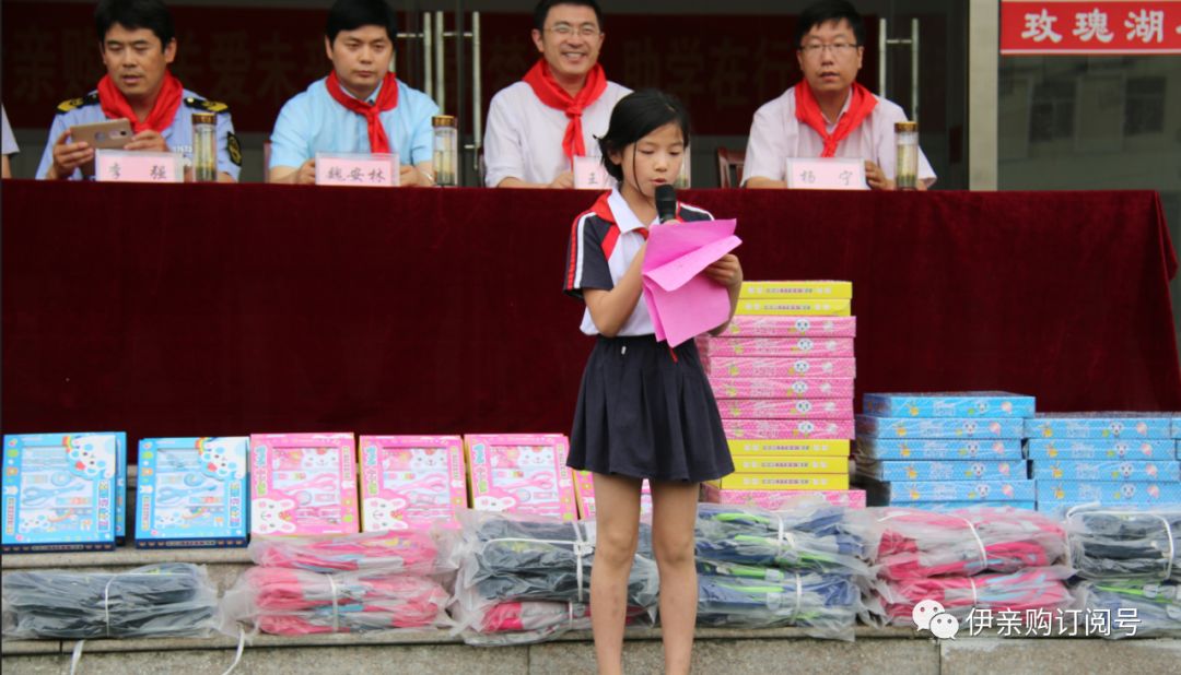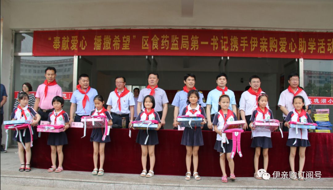赠人玫瑰,手有余香,奉献爱心,播撒希望。6月4日上午,兰山区食药监督局第一书记携手伊亲集团来到李官镇玫瑰湖社区玫瑰湖小学为这里的全体学生送来书包以及文具用品等物资。原临沂市环保局调研员焦国松,兰山区区委组织部选派办副主任刘怀祥,兰山区食品药品监督管理局副局长李强,兰山区食品药品监督管理局办公室主任王金玺,兰山区李官镇人大副主席/玫瑰湖社区管理区书记杨志永,伊亲集团董事长魏安林等人参加了捐赠仪式。 兰山区区委组织部选派办副主任刘怀祥 捐赠仪式上,少先队员向参会领导敬献红领巾,兰山区区委组织部选派办副主任刘怀祥为捐赠仪式致辞,他指出,少年儿童是祖国未来的建设者,是中国特色社会主义的接班人,关心少年儿童成长是全社会的共同职责。在此我希望玫瑰湖社区第一书记充分发挥党建引领作用,努力营造关爱儿童、呵护成长的社会风气,为少年儿童的成长发展提供有力保障,让少年儿童体会到党和社会的温暖与关怀。 兰山区食品药品监督管理局副局长李强 兰山区食品药品监督管理局副局长李强致辞,他讲到,社区第一书记联合爱心企业,在李官镇玫瑰湖社区玫瑰湖小学举办此次捐资助学活动,既体现了对少年儿童成长的深切关怀,又体现了对玫瑰湖社区发展的无私帮助;既是对兰山区工作的关心支持,又是对第一书记工作的高度重视。下一步,第一书记将带领村支两委,打造美丽乡村、整治村容村貌,壮大集体经济、培植特色产业,弘扬文明新风、做好民生保障,为少年儿童成长提供良好环境,促进少年儿童茁壮成长。 伊亲集团董事长魏安林 作为捐赠方,伊亲集团董事长魏安林在捐赠仪式上作了发言:十年树木,百年树人;立业兴邦,教育为本。我们深知,教育关系着国家的前途和命运,支持中国教育事业是我们伊亲集团义不容辞的责任,鼓励孩子们要好好珍惜和利用学习资源,好好学习,向上向善,用知识改变命运,报答父母,将来成为对国家、对社会有用的人。 学生代表 随后,学生代表也携着一颗感恩之心,感谢叔叔、阿姨的爱心捐赠,同时号召同学们要在领导和老师的教诲下努力学习,奋发向上,做祖国的栋梁。活动最后,台上领导为孩子们授予学习用品,学生们手捧崭新书包和文具,兴奋和喜悦之情溢于言表。 伊亲一直不忘初心,把社会公益活动当做企业发展的重要战略,积极投身社会公益事业。 在精准扶贫方面,参与临沂市农村电商精准扶贫项目,联合沂蒙义工联合会、临沂创业大学、山东农本商业运营管理有限公司等单位,投资1200万元打造“壹加壹农村电商产业园和沂蒙(国际)特产批发城”项目,帮助沂蒙土特产走向全国,造福沂蒙农村贫困家庭。参加“临沂市百企精准扶贫联盟” ,对接汪沟镇东三念村,精准对接帮扶23户省级贫困户;为莒南县渊子崖村、兰山区郭庄村捐赠大型净水设备,帮助1万多名村民喝上安全健康的纯净水。在爱心助学方面,累计投资100余万元帮助临沂大学学生实现创业梦想。积极参与共青团希望工程圆梦行动、市光彩事业促进会“郎助郎上学堂”爱心助学活动、安徽省仁众教育基金会组织的慈善拍卖活动等,为困难学子积极捐款捐物。在困难救济方面,积极参与“孤寡残贫光彩事业”,先后到临港开发区看望100户困难村民,看望庙上村困难患病困难家庭,为他们送去医疗救助金。参与平县邑地方镇小学关爱留守儿童爱心家园建设活动,关爱留守儿童;到沂南县青坨镇高里中心小学参加“新年新衣”送温暖活动,为他们送去温暖棉衣;先后到临沂市天使国际特教学校、临沂市儿童福利院看望特殊儿童,为他们送去奶粉、纸尿裤等生活必需品。