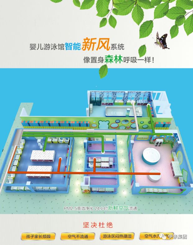 解决方法:建议婴游馆内安装新风系统,通过连续均匀地将新风送入室内,给室内补充新鲜空气,同时将室内产生的污浊空气经热回收后排向室外。这样可以在保持室内空气清新的同时,保持室内热量,做到节省经济,节能环保。